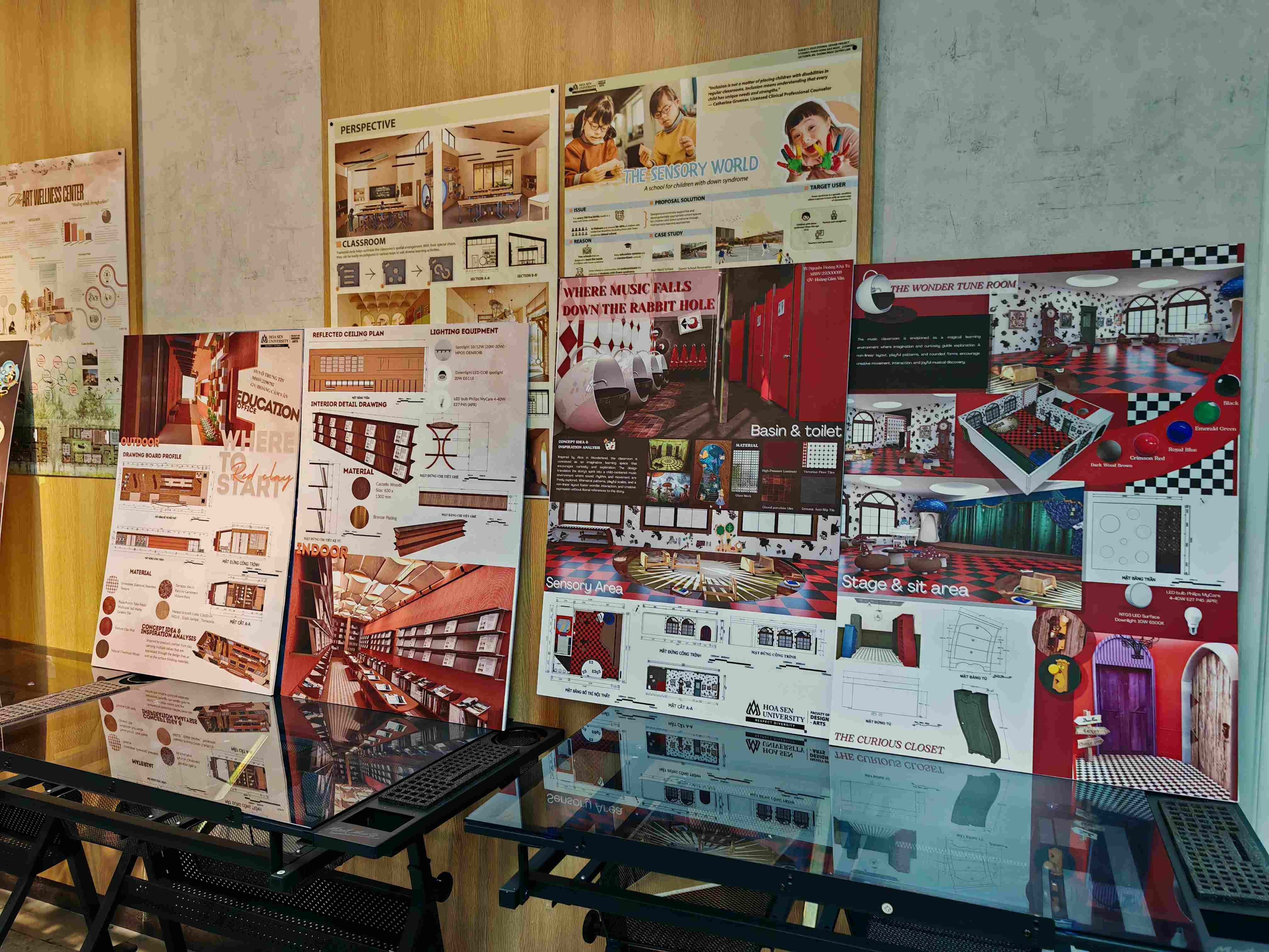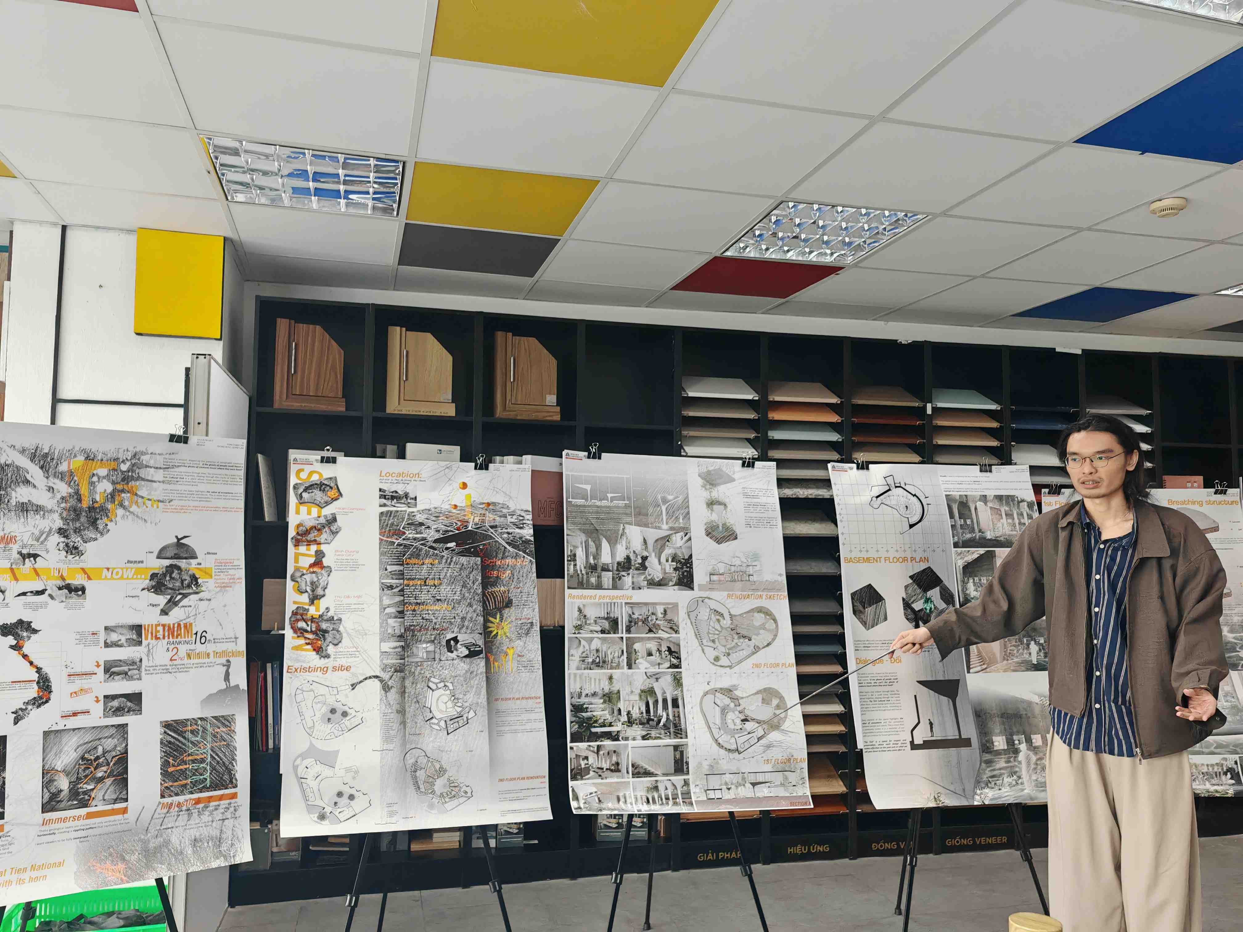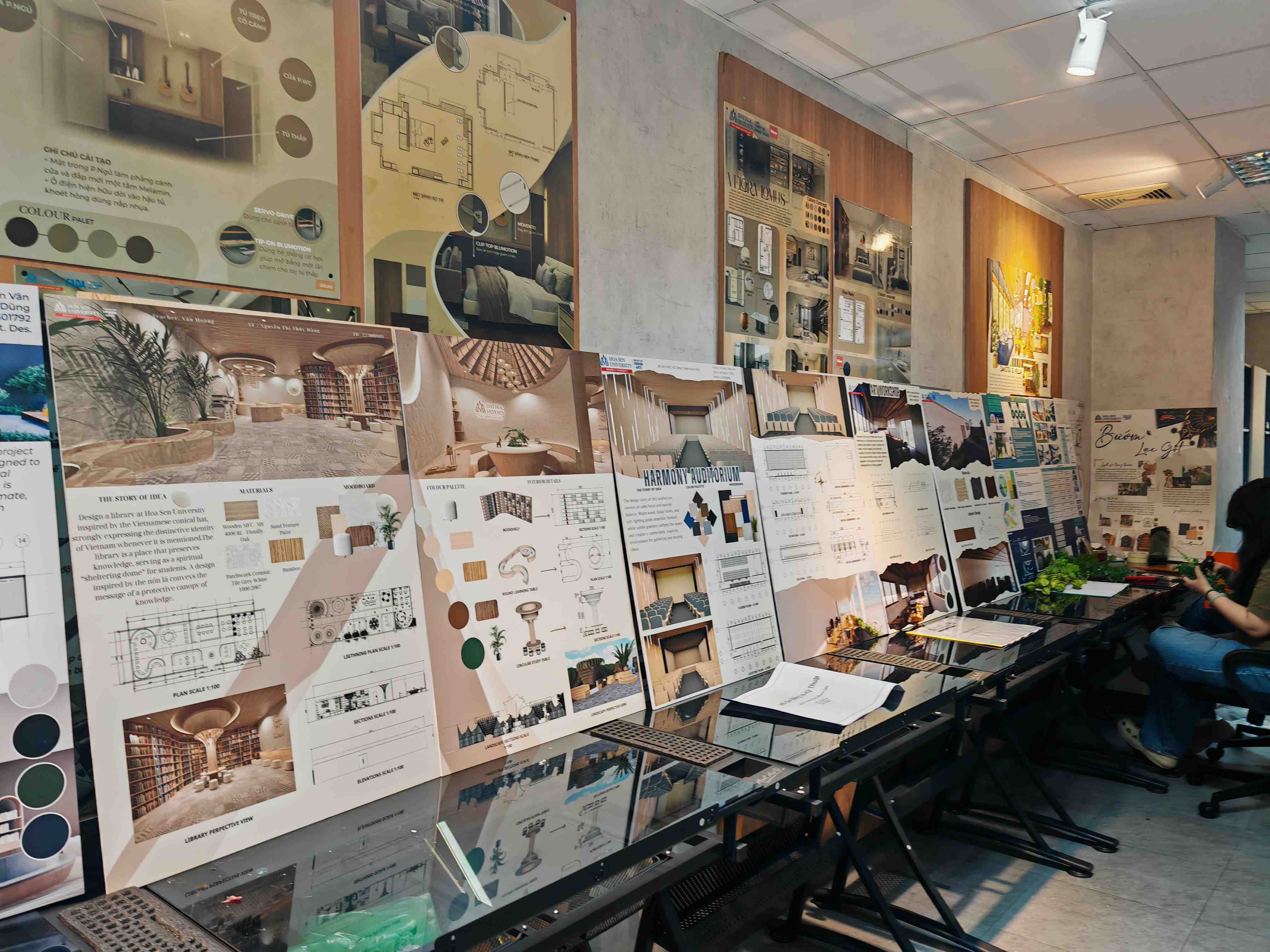 Không gian trưng bày đồ án của sinh viên ngành Thiết kế Nội thất