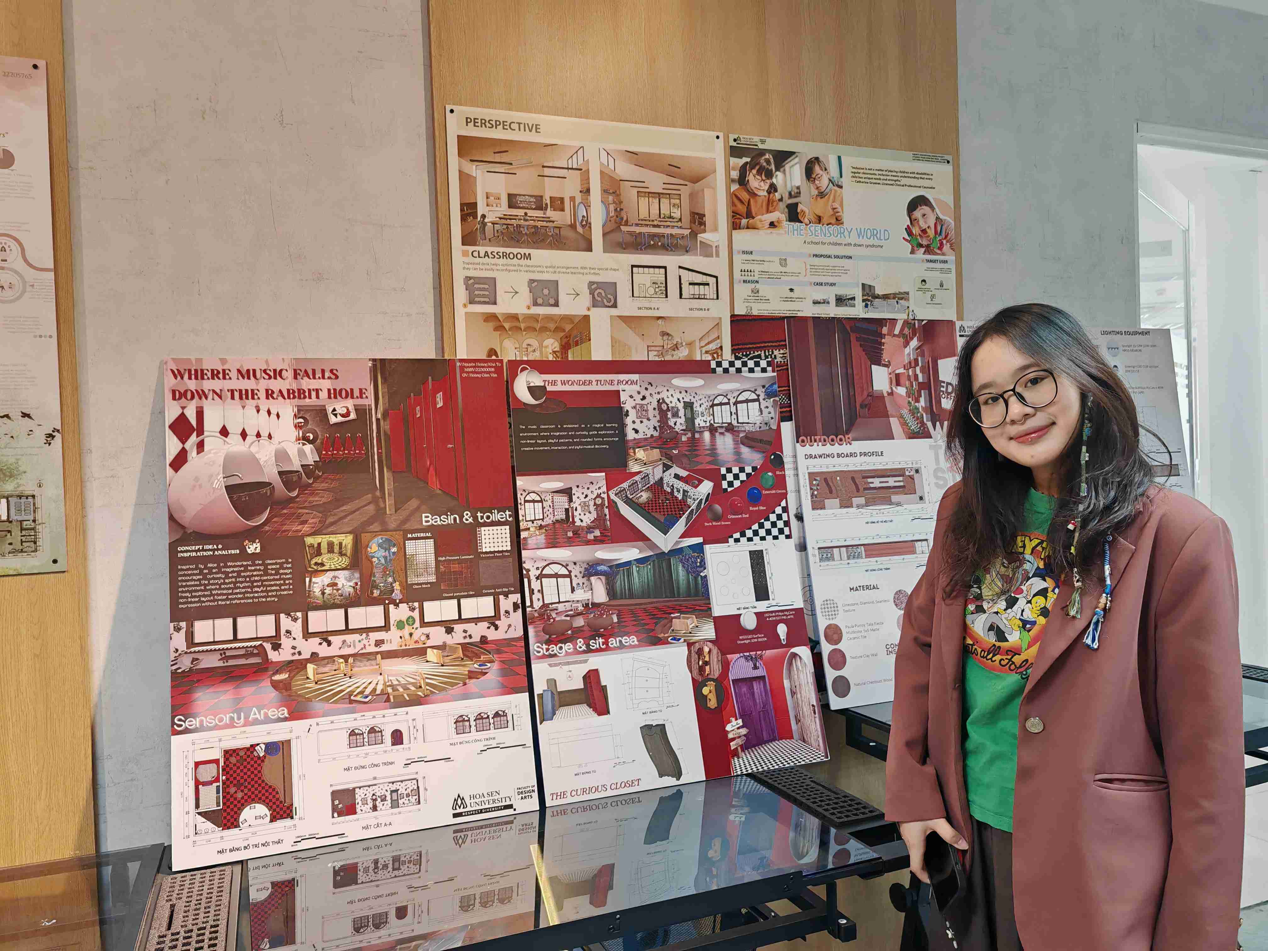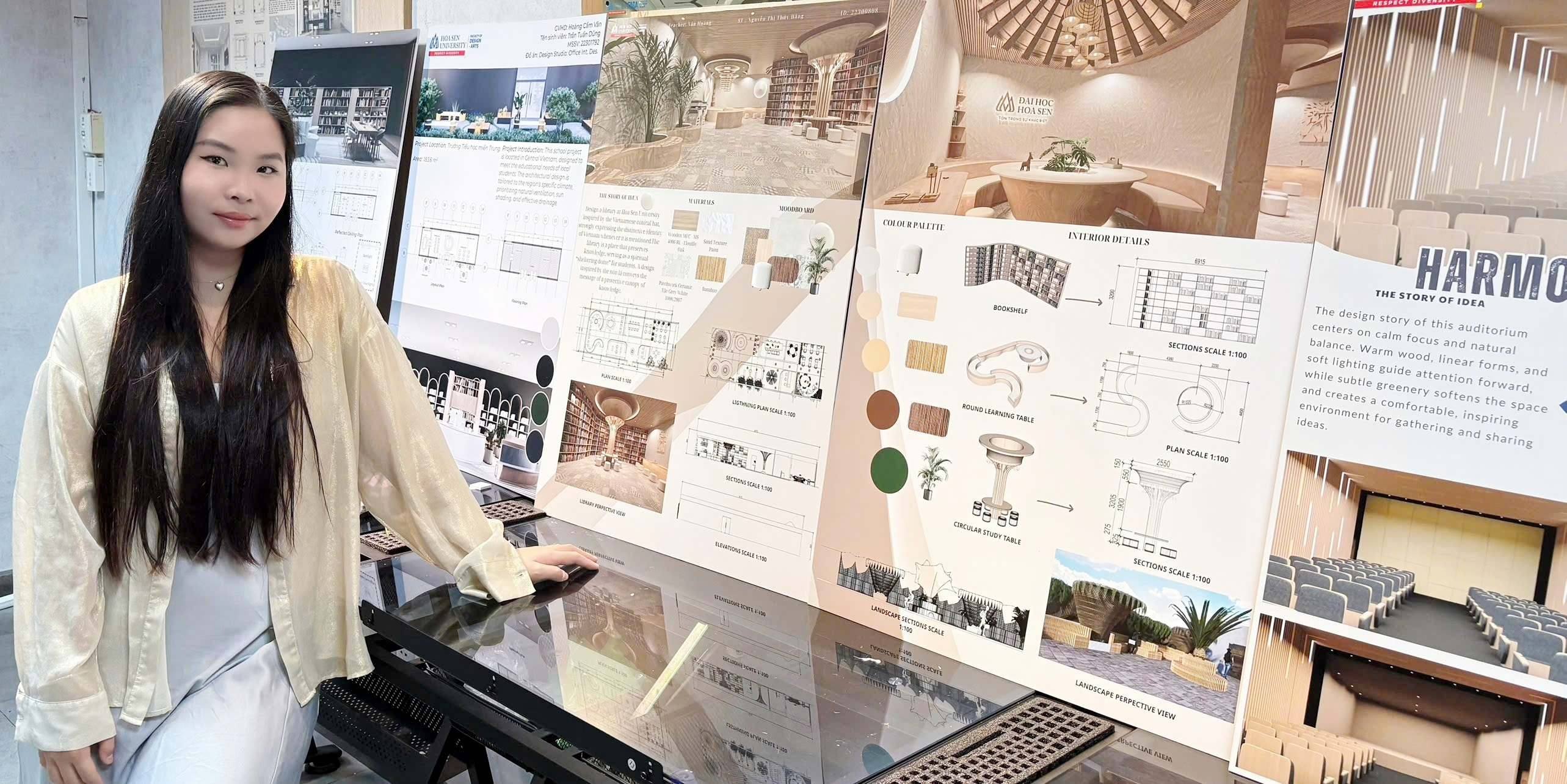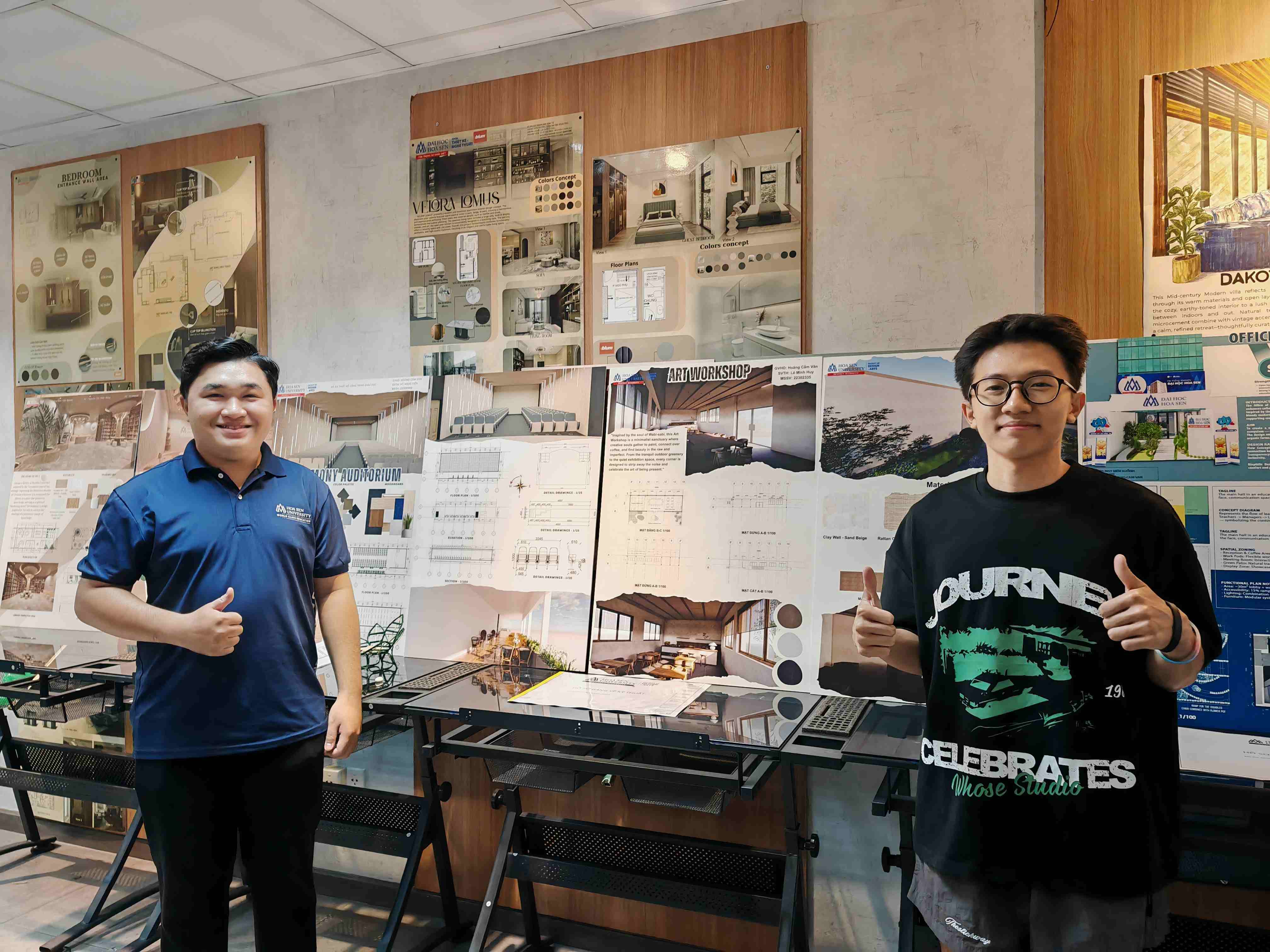 Trong không khí học kỳ cuối năm, không gian các studio và hành lang trưng bày của ngành Thiết kế nội thất – Đại học Hoa Sen (HSU) lại trở nên nhộn nhịp hơn bao giờ hết. Những tấm poster đồ án phủ kín tường, mô hình được đặt ngay ngắn trên bàn, sinh viên phấn khởi nhưng cũng hồi hộp đứng cạnh bài làm của mình, sẵn sàng trình bày và phản biện. Đó là hình ảnh quen thuộc nhưng luôn mang nhiều cảm xúc trong mỗi mùa chấm đồ án môn học.