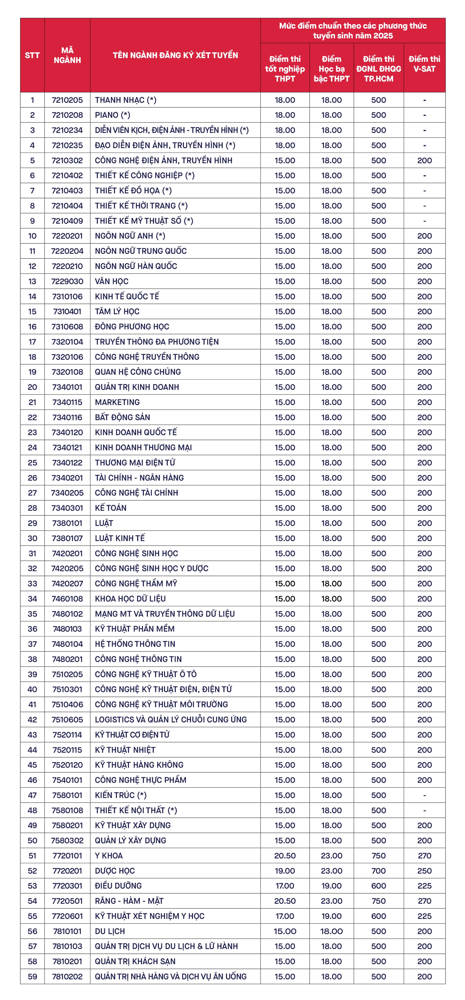(*): Các ngành có môn thi chính nhân hệ số 2 và quy về thang điểm 30.